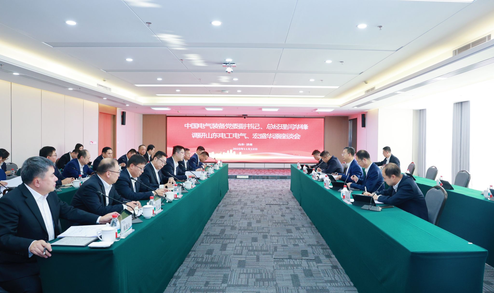 • 11月12日,中國電氣裝備黨委副書記、總經(jīng)理閆華鋒在濟南與山東省委常委、濟南市委書記劉強,市委副書記、市長于海田會談,并見證簽署戰(zhàn)略合作框架協(xié)議。濟南市委常委、秘書長韓偉,副市長謝堃,市政府秘書長續(xù)明;集團公司黨委常委、副總經(jīng)理朱安珂參加活動。閆華鋒對濟南市一直以來對中國電氣裝備的關(guān)心和支持表示感謝,介紹了集團公司的改革發(fā)展情況。他表示,濟南重大戰(zhàn)略交匯疊加,產(chǎn)業(yè)基礎(chǔ)堅實完備,希望雙方以深入學(xué)習(xí)宣傳貫徹黨的二十屆四中全會精神為契機,強化“十五五”規(guī)劃對接,繼續(xù)深化務(wù)實合作,充分發(fā)揮濟南市的資源